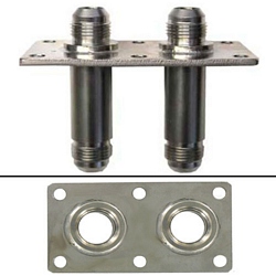 High-pressure through-deck (bulkhull) fitting. Stainless steel construction. Rated for 3000 psi, for use with hydraulic systems. Two female NPT ports: 3/4". Overall dimensions: 5.5" X 3".