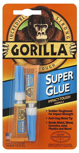 Gorilla super glue. A quick-drying, super-strong formula. Designed for quick fixes and repairs. Works on practically any surface. Twin pack of two 3 gram squeeze pack. Weight: .1 lb.