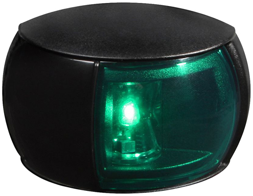 UV and impact resistant acrylic lens. High-impact shroud. Visible up to 2 nautical miles. Pre-wired with 2.5 meters of marine cable. Rated for 8 - 28 volts DC. Black housing. Color: Starboard, green.
