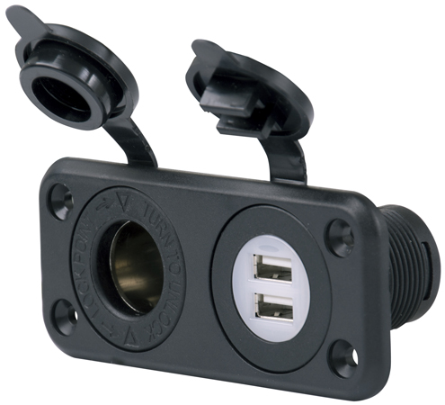 Dual USB has 12 to 24V DC input with a 5V DC output, a total of 2.1 amps output between the two ports.