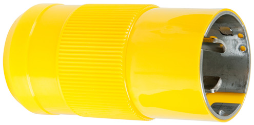 Twist lock male 50A 125V shore power plug features corrosion resistant contacts and terminals.