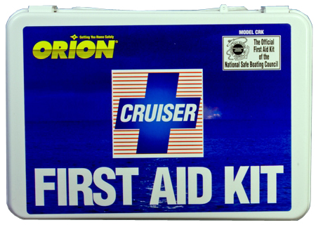 "Cruiser" 158-piece first aid kit. Hard shell, waterproof pack for wall mounting. Includes: - 66 adhesive strips - 19 wound dressings - Antiseptics and medicines - A cold pack - Scissors and forceps - Latex gloves - First aid instructions.