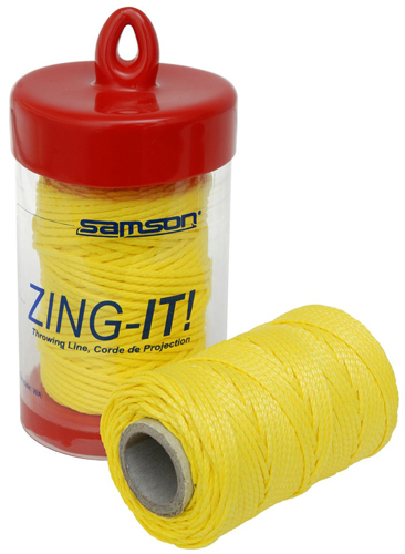 Zing-It! Dyneema accessory twine / cord. Extremely high strength and abrasion resistant. Coated with Samthane urethane for a gliding surface. Compact package allows for high throws with lighter weight. Diameter: 3/32" / 2.2 mm. Length: 1000 feet. Weight: 1.6 lbs.