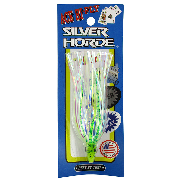 The Ace Hi Fly features a Double Glow "Needlefish" Head that intensifies the hydrodynamic flow of water over its tinsel for superior action. When fished behind a dodger or flasher the facets on four sides will increase the erratic movement of the Ace Hi Fly.