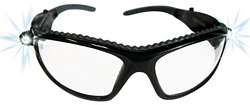 Clear "LED Inspectors" reader's glasses from SAS Safety. Features 2.0X magnification diopter scratch-resistant lenses One-touch ultra-bright LED lights for illumination. (LR44 batteries included.) Lenses also give 99.9% UV protection. One size fits all. Weight: .81 lbs.