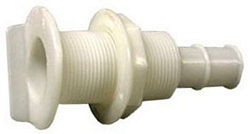 L-head thru hull. Barbed for easy marine hose fitting. UV resistant, color-stabilized plastic construction. 1".