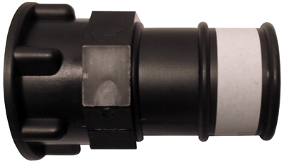 King nipple. Female thread to barb adapter. Dimensions: 1-1/8" female thread to 1" hose.