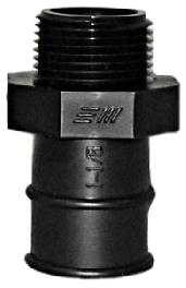 King nipple. Male thread to hose barb adapter. Dimensions: 1-1/8" male thread to 1-1/2" hose.