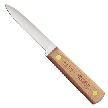 Stain-free, high-carbon steel 3-1/4" blade. Durable, slip-resistant white polypropylene handle. NSF certified. Three per pack.