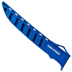 Net, twine and line (NTL) knife. Designed to be tough and sanitary. Features: - A textured, slip-resistant polypropylene handle - An impervious blade-to-handle seal to stay sanitary - Always-sharp scalloped edge - Includes a plastic sheath to wear on a belt. Size: 3-1/4".