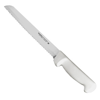 Features a stain-free high-carbon steel blade. Slip-resistant, comfortable to use and sanitary. Equipped with a white Sofgrip polypropylene handle. 12" blade. NSF certified.